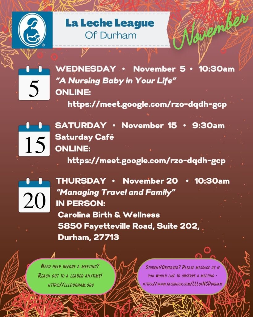 LLL Durham is excited to offer three meetings this November!